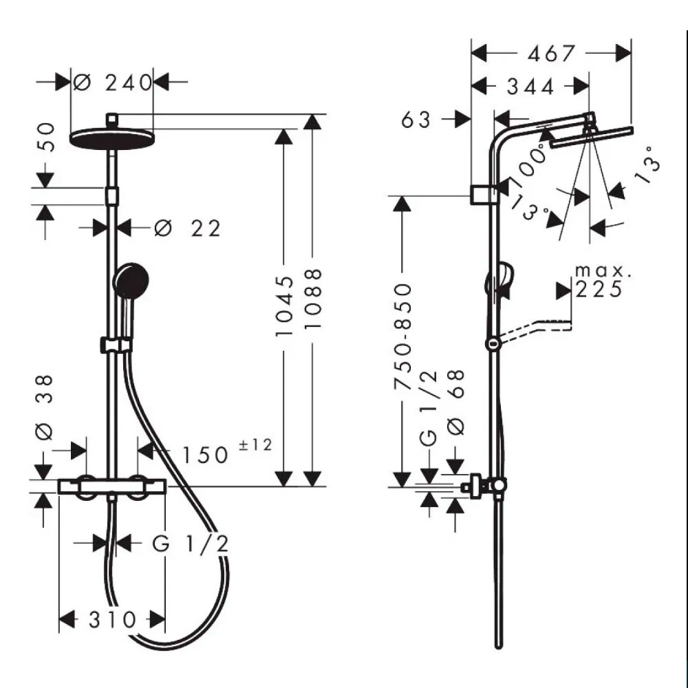 ACTIVERA S - 28875000 SHOWERPIPE ДУШЕВАЯ СИСТЕМА 240 ,БЕЗ ТЕРМОСТАТА 1JET, ХРОМ