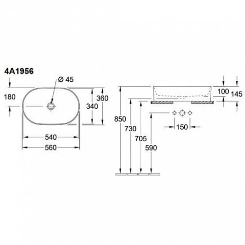 COLLARO - 4A1956R1 РАКОВИНА ОВАЛЬНАЯ НА СТОЛЕШНИЦУ56CM