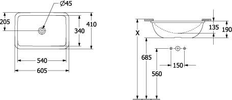 Коллекция - Loop & Friends Описание изделия - Встраиваемая раковина Размер - Размер: 540 x 340 x 185 mm Тип смесителя /Отверстие для смесителя Указание - без предусмотренного для смесителя отверстия Перелив Указание - c переливом Материал - Санфарфор