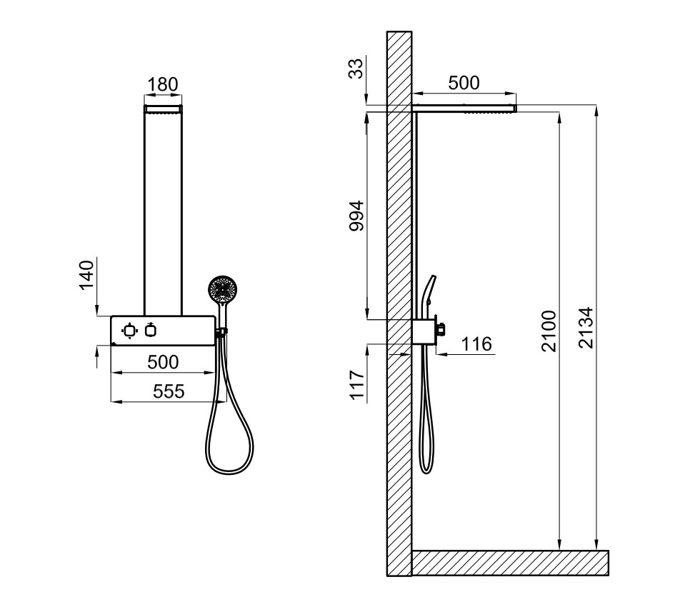 OXO - 100343449 ДУШЕВАЯ СТОЙКА С ТЕРМОСТАТОМ, РУЧНОЙ ДУШ, БРАШИРОВАННАЯ МЕДЬ