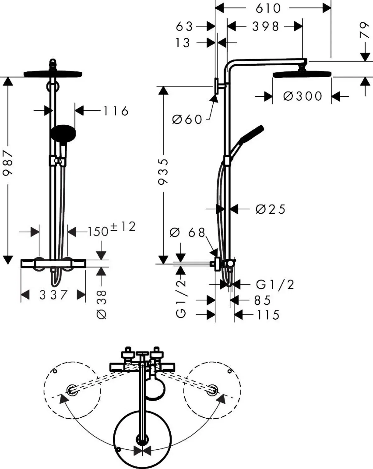 Душевая система hansgrohe Raindance Alive S Puro состоит из: