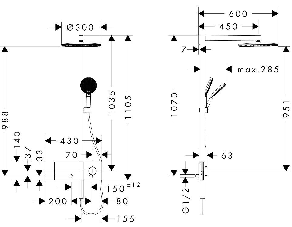 Максимальный расход для Showerpipe при давлении 3 бар: 11,8 л/мин