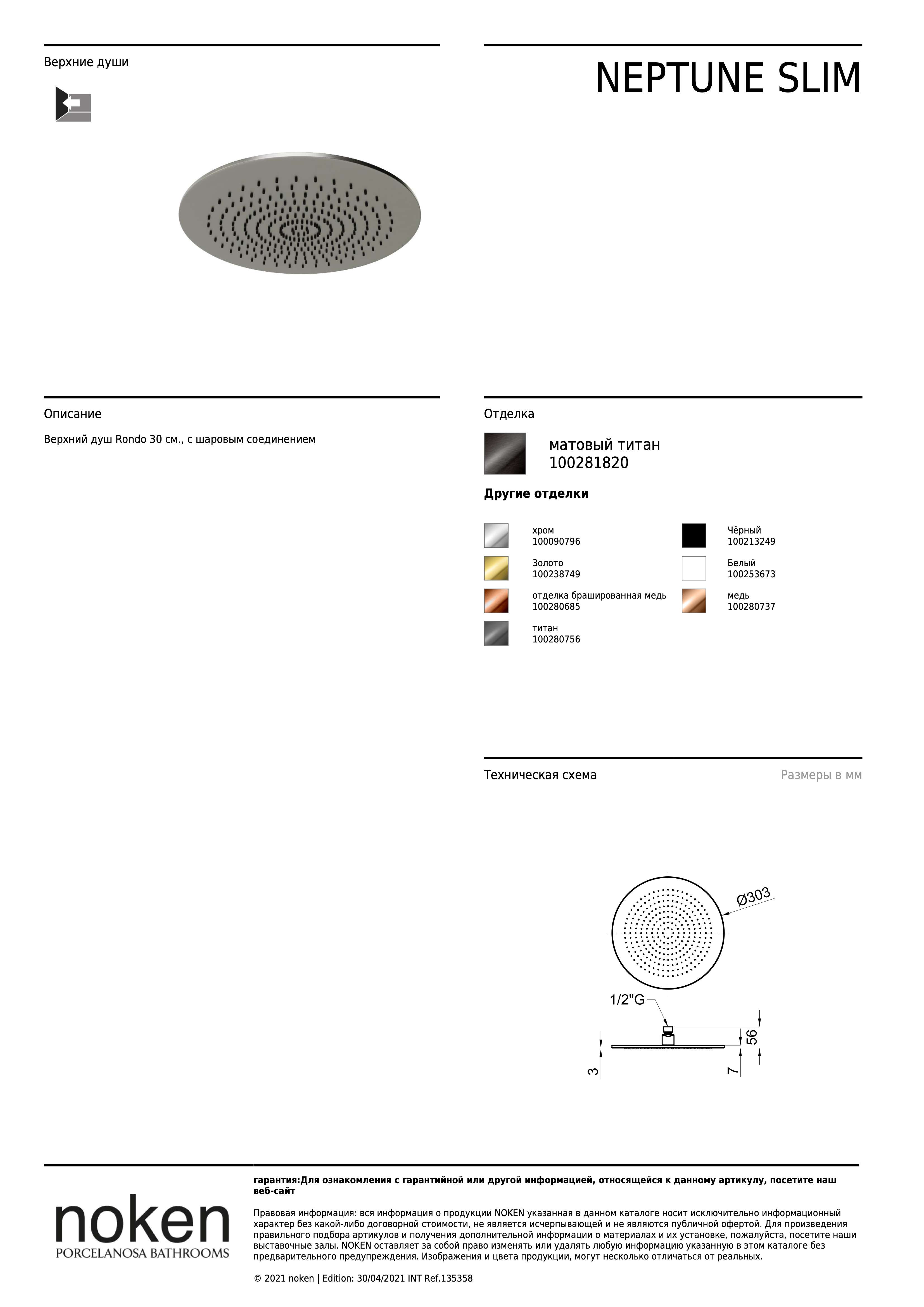 RONDO 100281820 ВЕРХНИЙ ДУШ 30 СМ, С ШАРОВЫМ СОЕДИНЕНИЕМ, БРАШ. ТИТАН