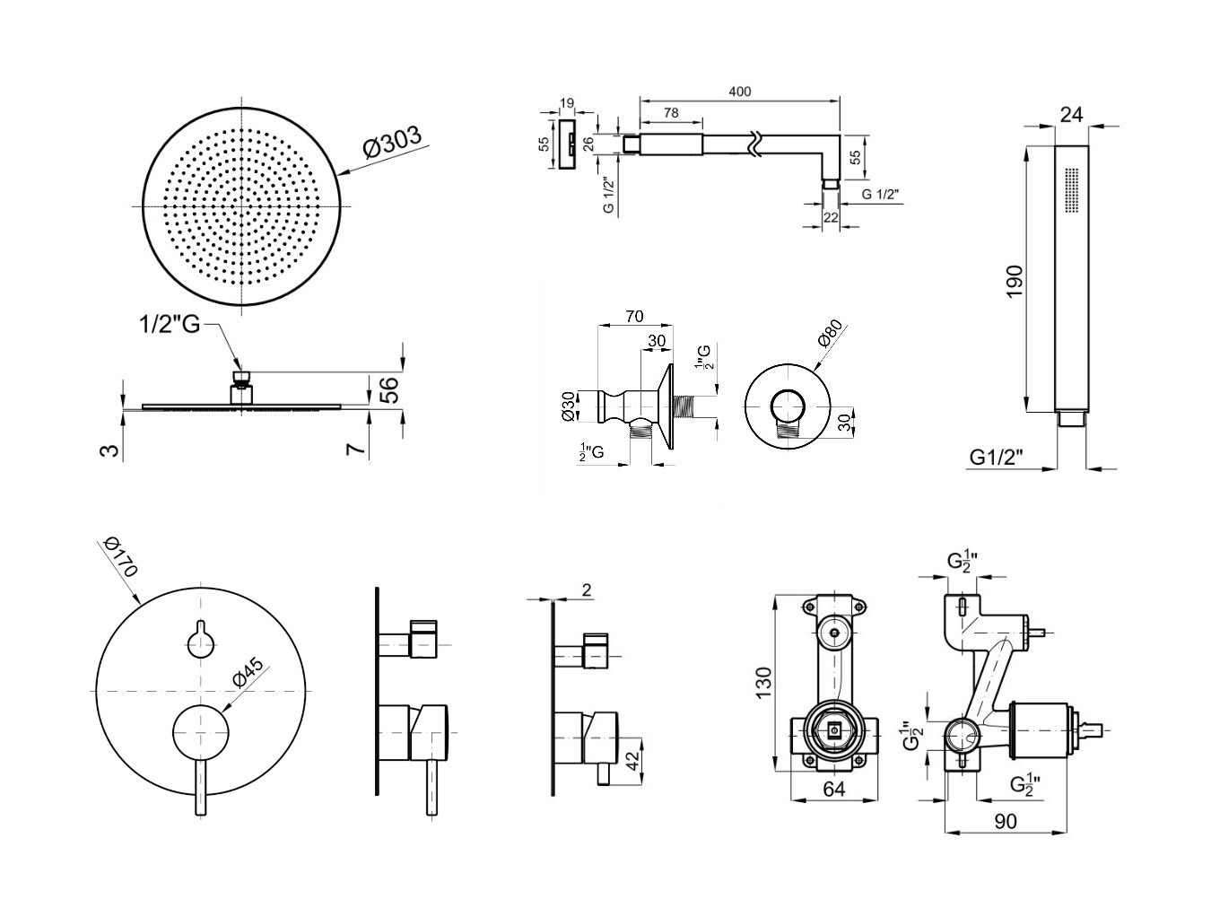 RONDO 100337042 К-Т ДЛЯ ДУША, С ВЕРХНИМ ДУШЕМ NEPTUNE SLIM D30 СМ, БРАШ. ЗОЛОТО