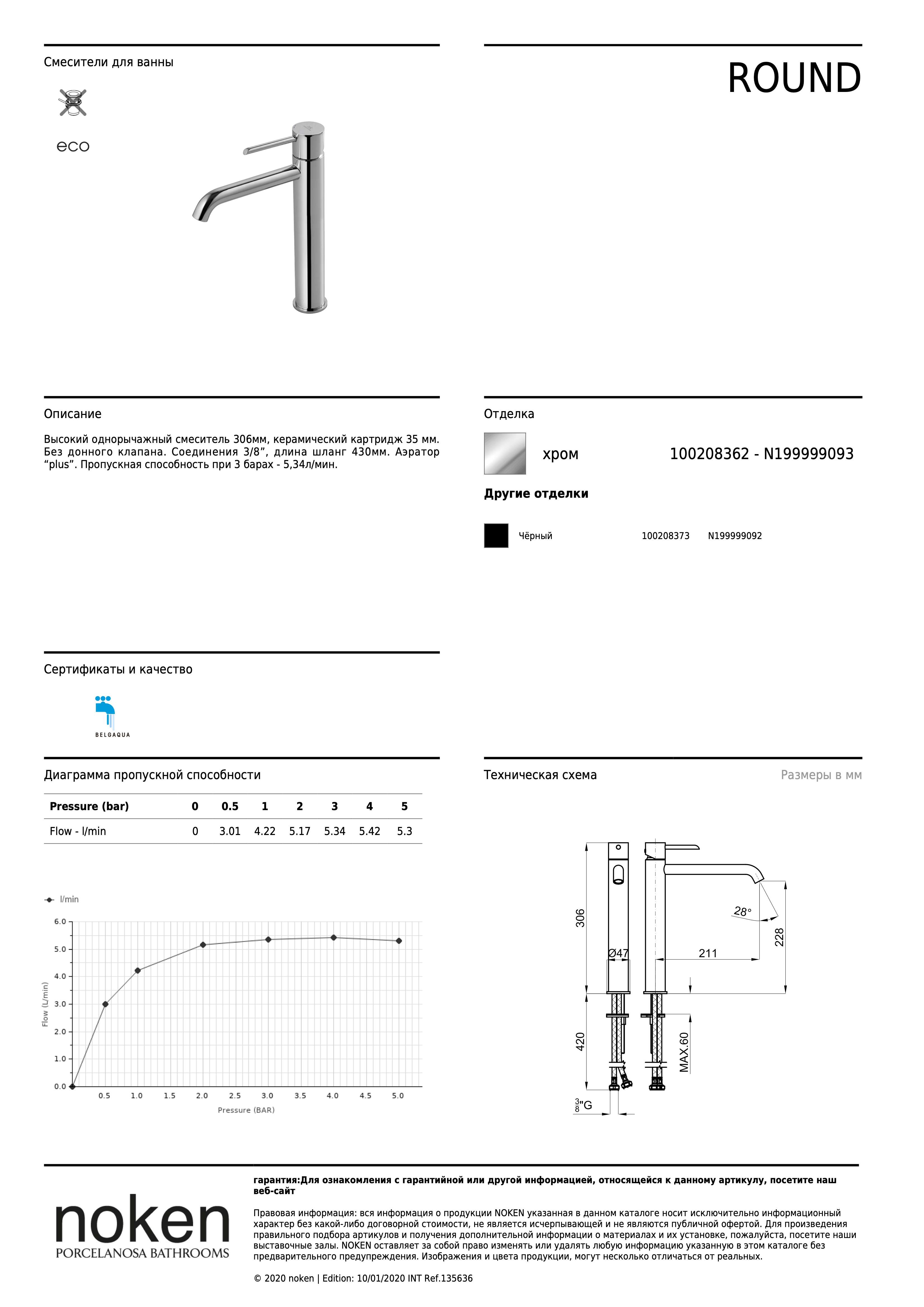 ROUND 100208362 СМ.ДЛЯ РАКОВИНЫ ВЫСОКИЙ БЕЗ Д/К