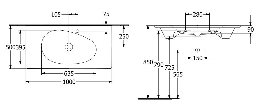 ANTAO - 4A76A2R1 РАКОВИНА ПОД МЕБЕЛЬ 100CM, White Alpin CeramicPlus