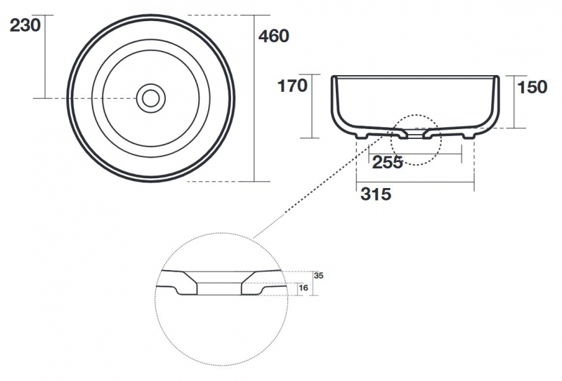 CIOTOLA C2 - 430230 РАКОВИНА НА СТОЛЕШНИЦУ БЕЛ.МАТ.