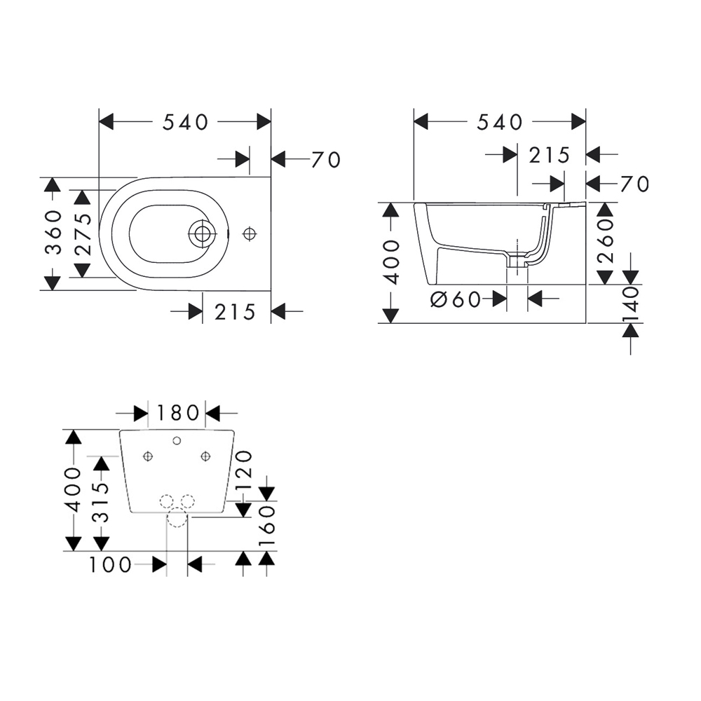 ELUPURA S - 60278450 БИДЕ ПОДВЕСНОЕ 540 ММ, БЕЛ.