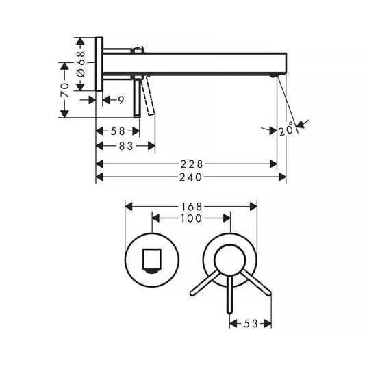 В комплект входит: однорычажный смеситель для раковины для скрытой установки, настенный монтаж, сливной комплект выступ: 228 мм вариант ручки: рычажная ручка тип распыления: ламинарный распыл максимальный расход при 3 бар: 5 л/мин керамический картридж подходит для проточных водонагревателей сливной комплект без запорного механизма материал сливного комплекта: металл тип соединения: базовый комплект размер соединения: DN15 ручка может быть расположена справа или слева в зависимости от установки базового комплекта классификация ЕС: макс. 6 л/мин - возможен существенный вклад (SC)