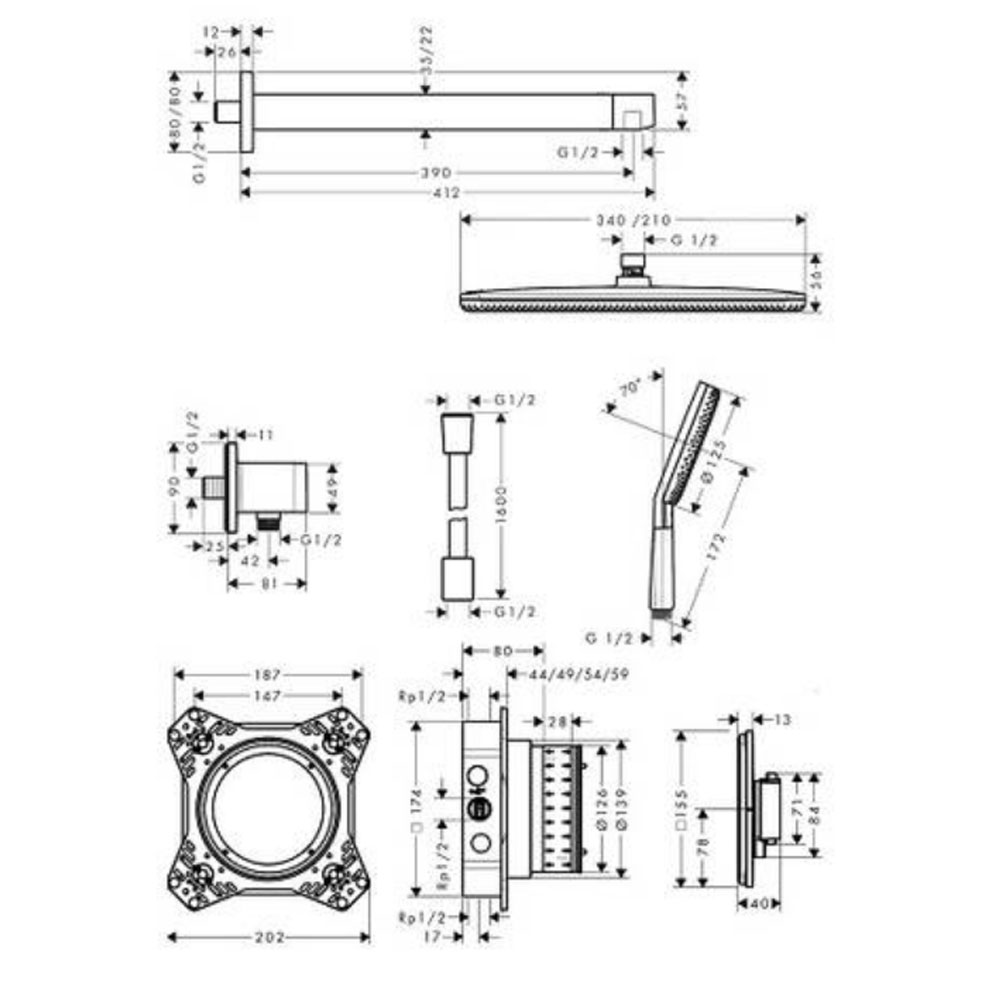 RAINDANCE ALIVE Q - 24620000 SHOWER SET ДУШЕВАЯ СИСТЕМА СКРЫТ.МОНТ. 210/340 1JET, ХРОМ