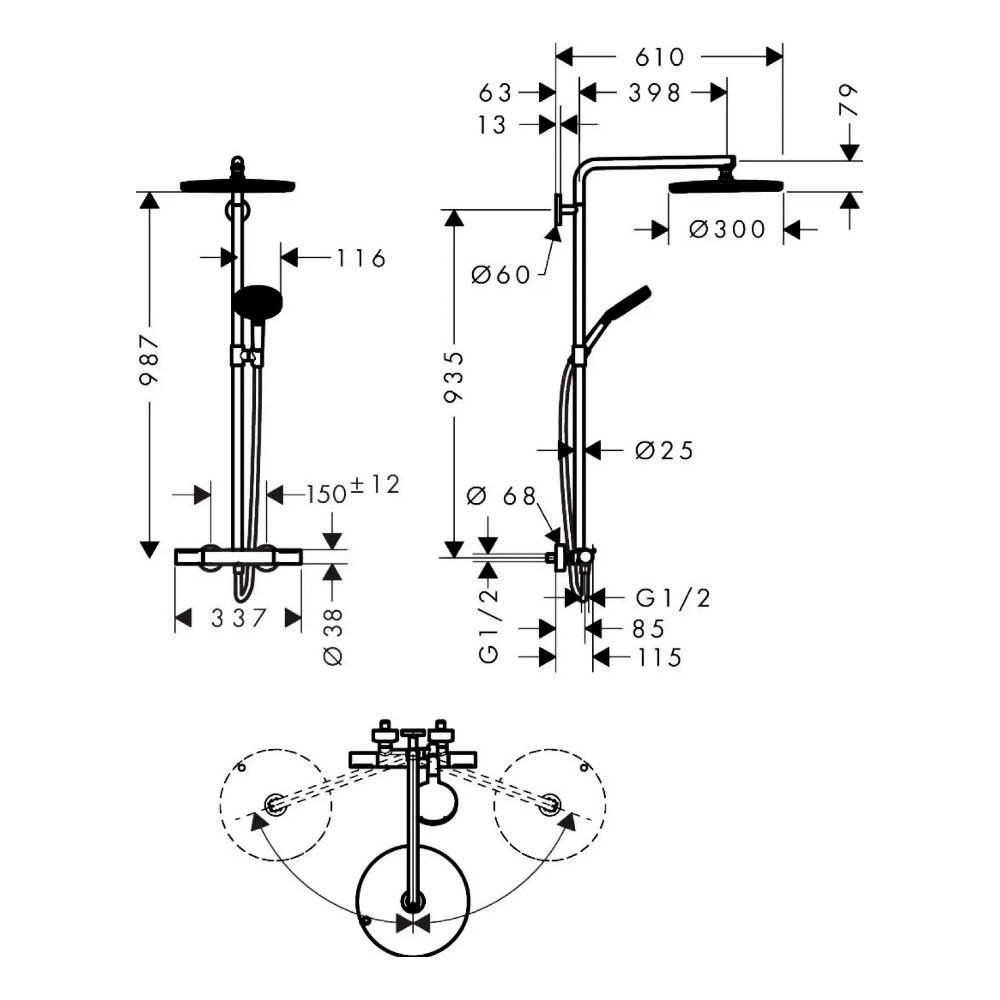 Душевая система hansgrohe Raindance Alive S Puro состоит из:
