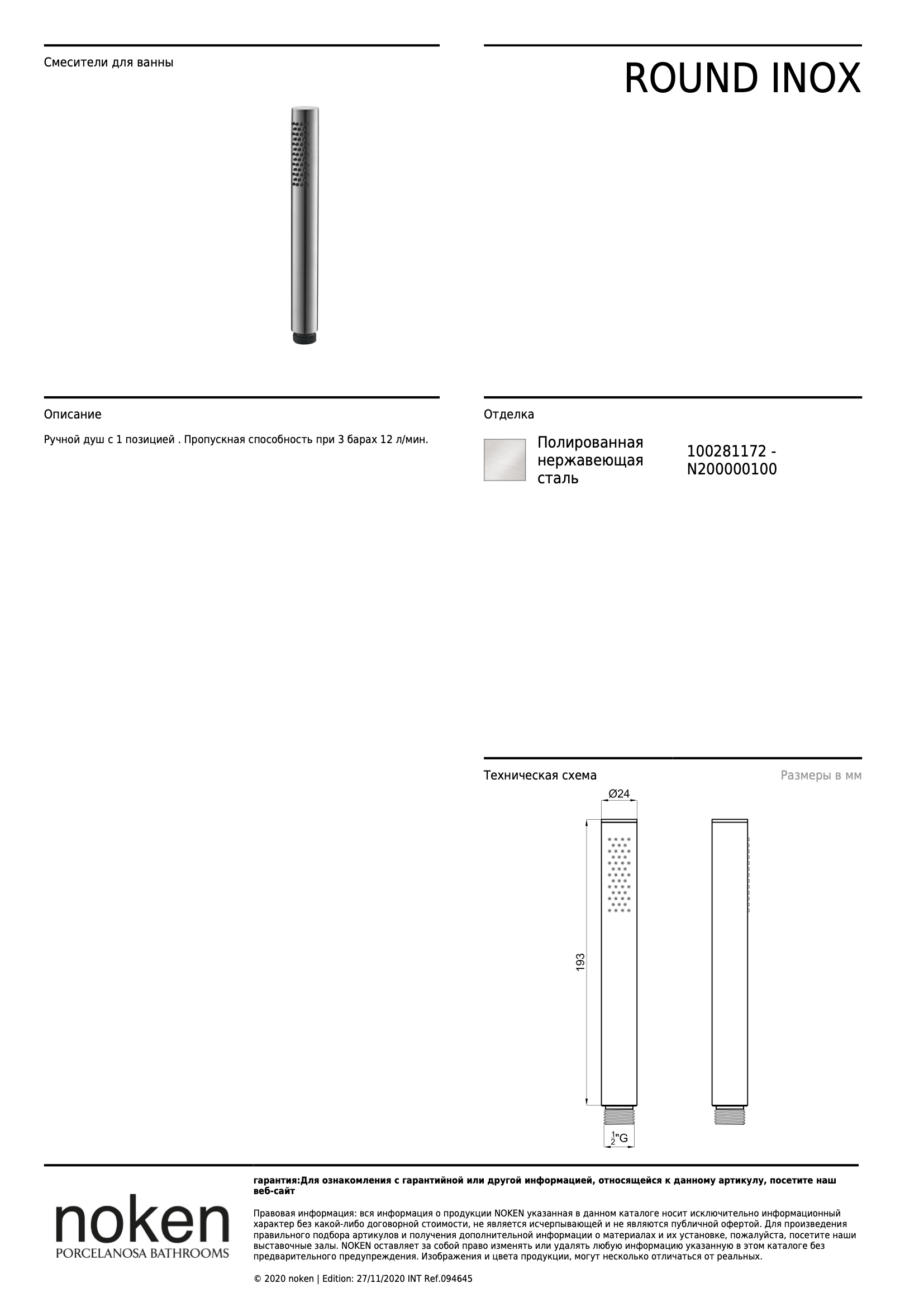 ROUND 100281172 РУЧНОЙ ДУШ НЕРЖ СТАЛЬ