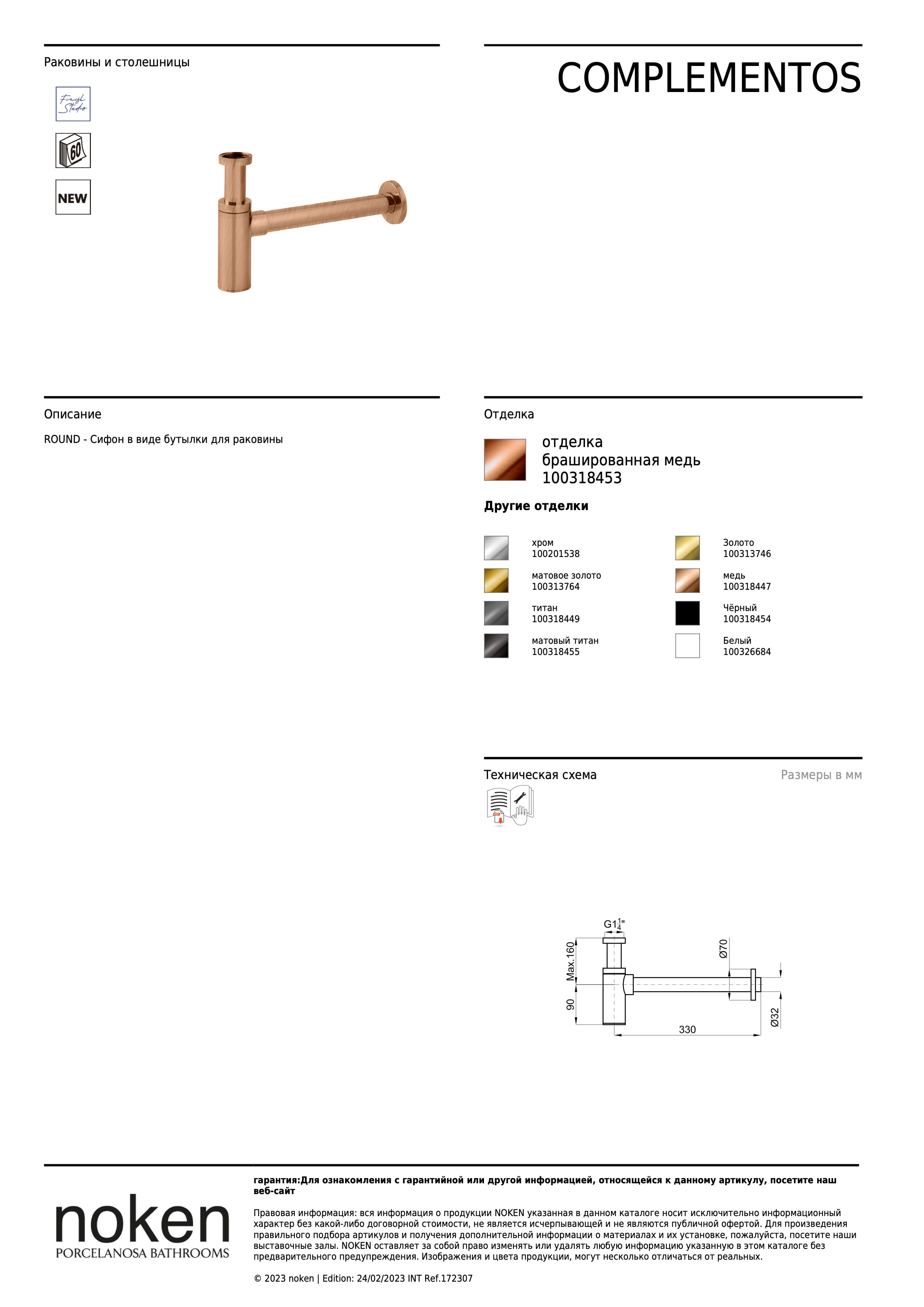 ROUND 100318453 СИФОН ДЛЯ РАКОВИНЫ, БРАШ.МЕДЬ