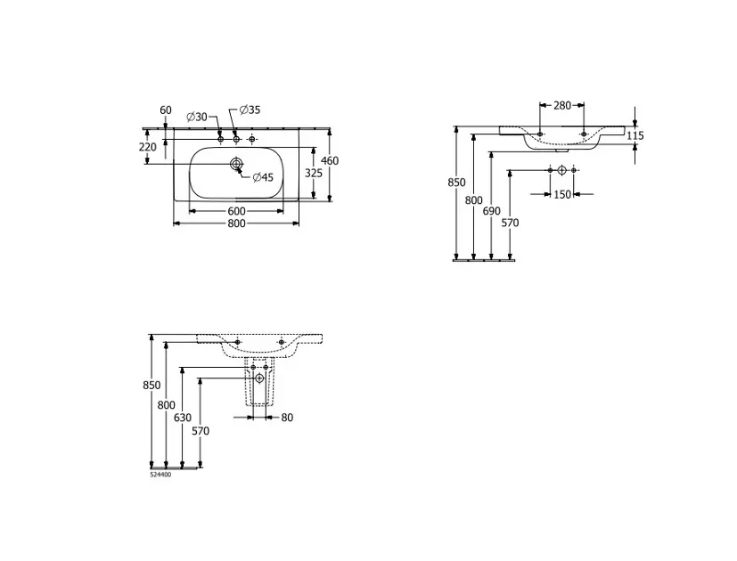 SKYLA - 5A518001 РАКОВИНА СТОЛЕШНИЦА ПОД МЕБЕЛЬ 80 СМ