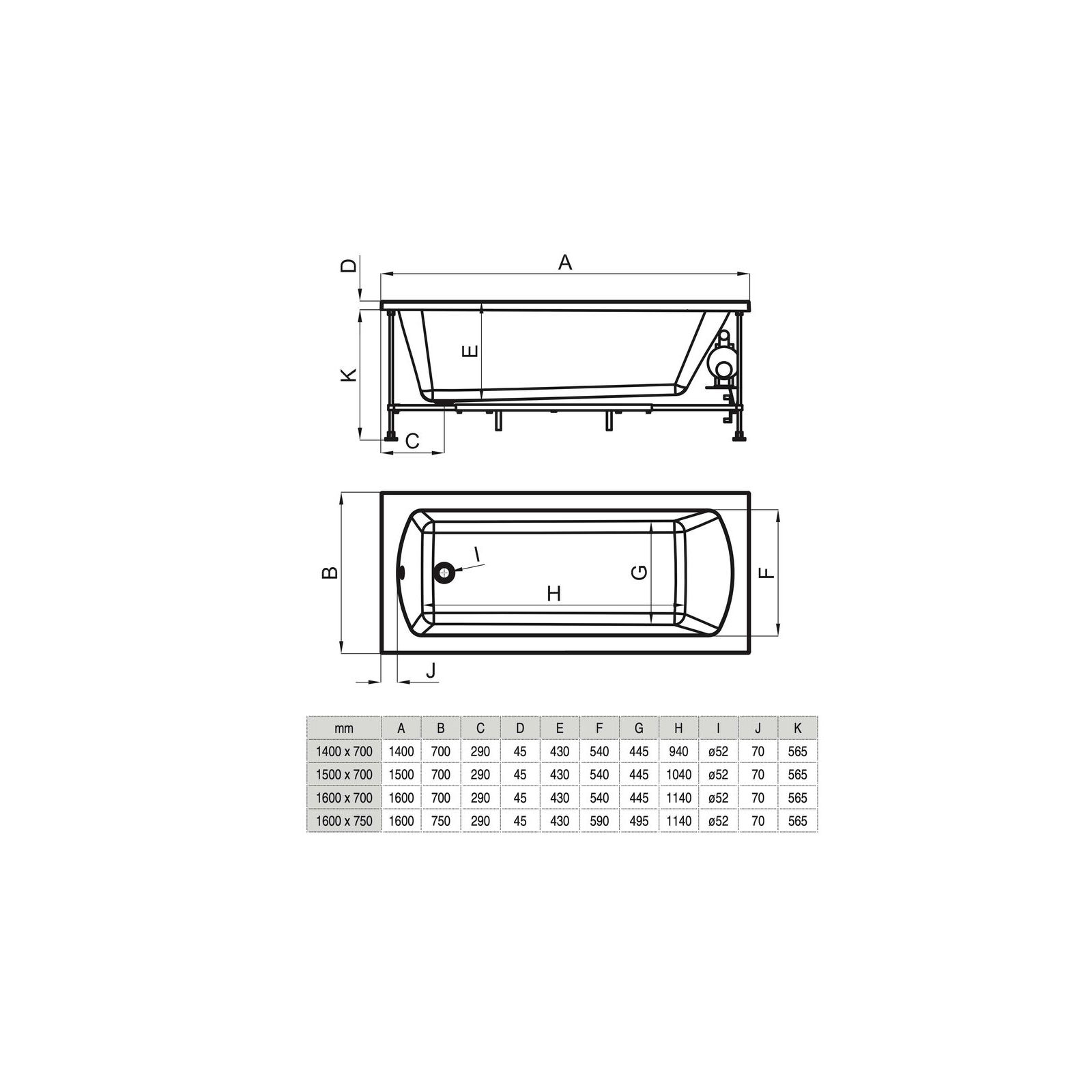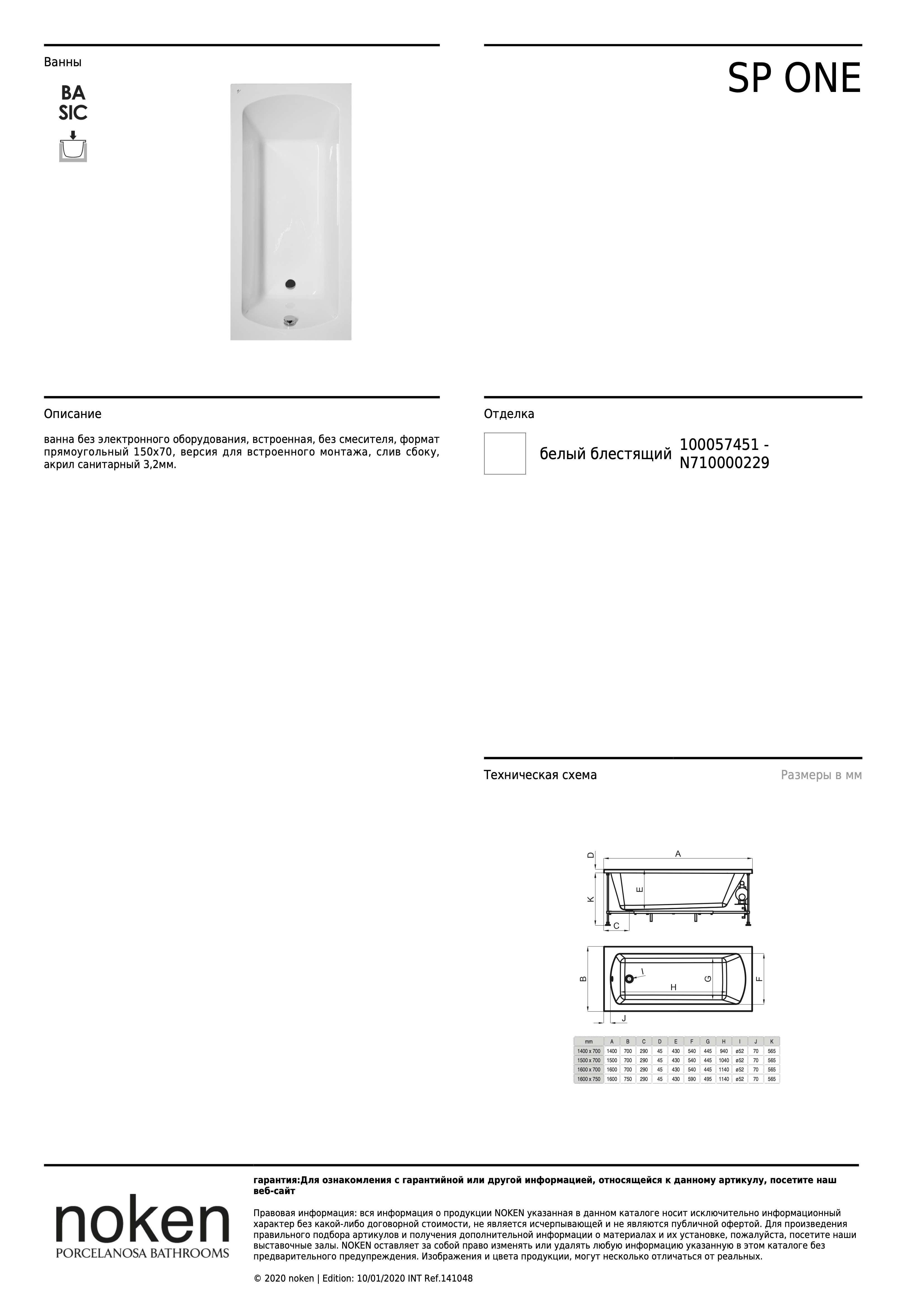 SP ONE 100057451 ВАННА 150X70 BASIC BB