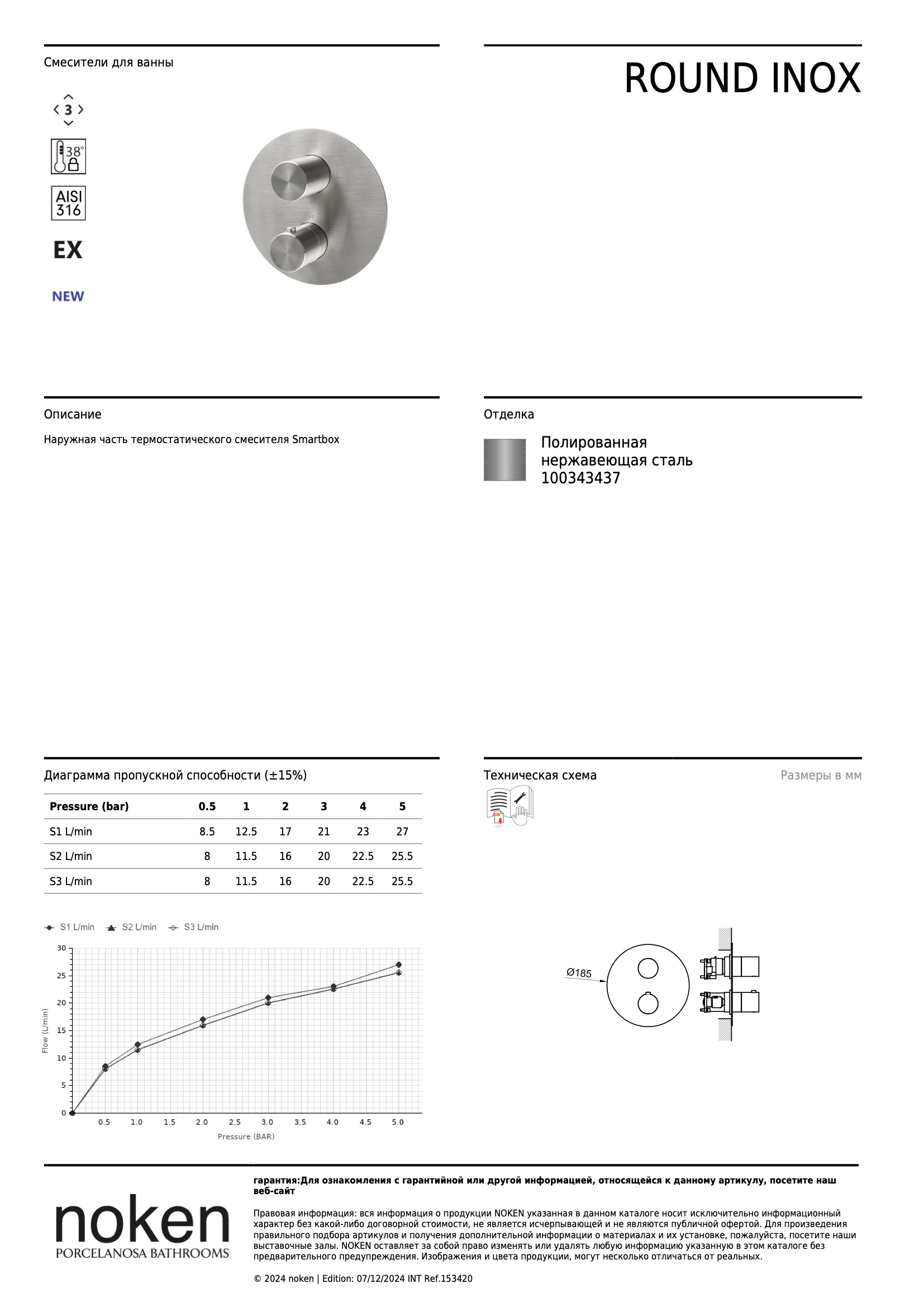 ТЕРМОСТАТ 100343437 BRUSHED STAINLESS STEEL